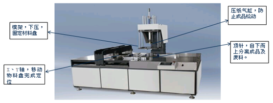 2.成品沖出后,人工將成品取出,載物臺移動(dòng)到下一工件處,繼續上述步驟。載物臺通過(guò)X、Y軸伺服驅動(dòng),移動(dòng)迅速、定位準確。